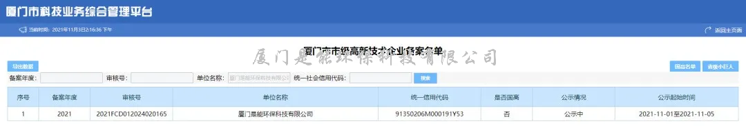 ➪通知原文:关于公示厦门市2021年第一批认定报备高新技术企业名单的通知